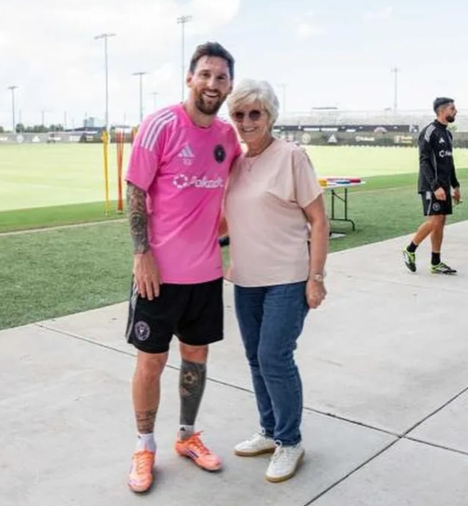 这位阿根廷球星效力于贝克汉姆的美国职业足球大联盟(MLS)球队迈阿密国际,并在俱乐部的训练场上与贝克汉姆的母亲桑德拉会面。